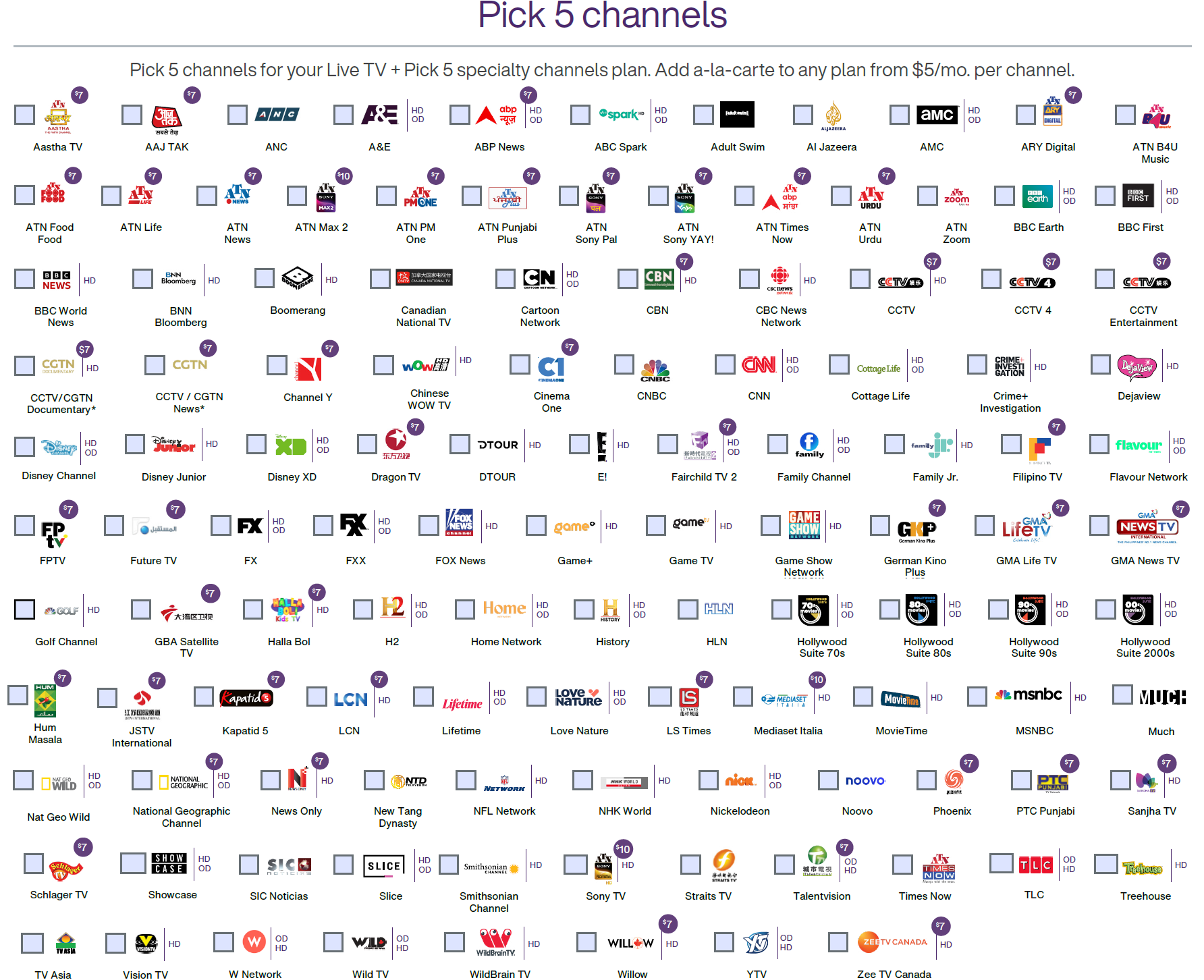 Core Channels + 2 Premium Services + 11 Theme Packs